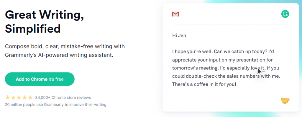 Write better and mistake-free with Grammarly. A spell checker chrome extension that will not only check spelling, but ensure everything you type is easy to read.