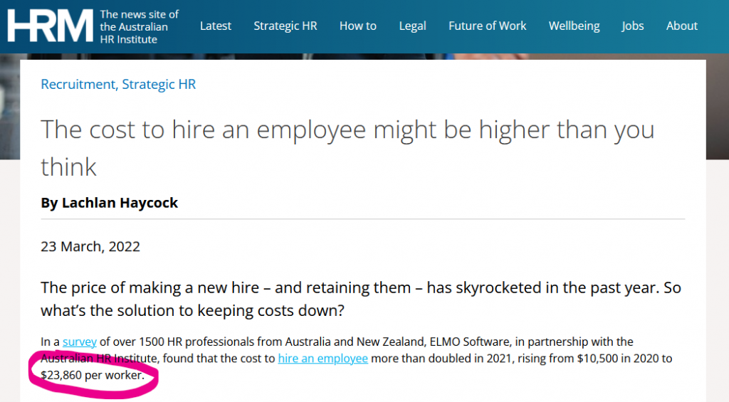 Employee retention and engagement Is an issue in almost all workplaces – finding and keeping staff is getting harder and harder. The Australian Institute of HR has the numbers – how much it costs to replace staff… It’s eye-watering;