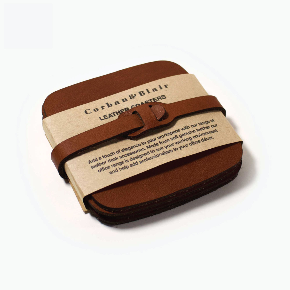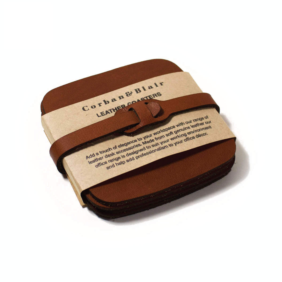This stylish set of 6 handcrafted leather coasters from Corban & Blair will add a touch of elegance to your workplace or home.