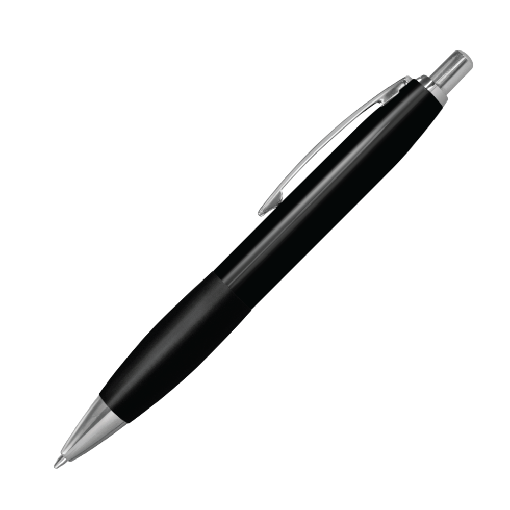 Aluminium alloyed retractable ball pen which features soft rubber grip, 1800 meters of German ink, tungsten carbide ball, and shiny chrome accents.