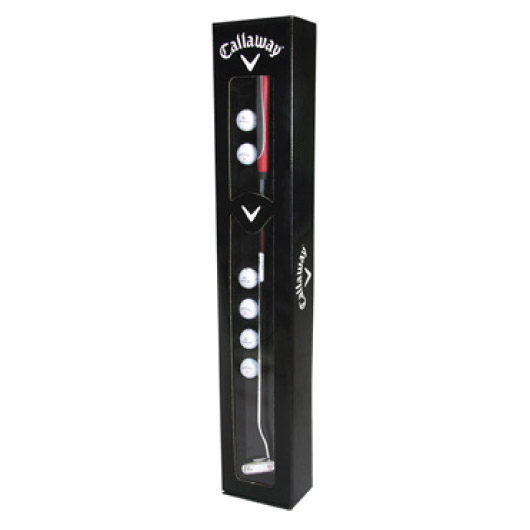 A world-class putter with gift packaging and 6x golf balls customised with your logo.