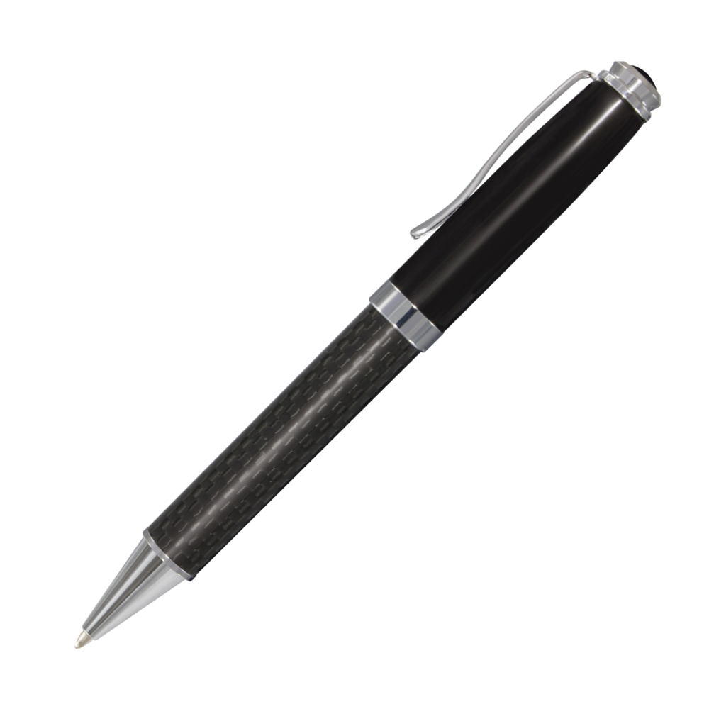 Elegant twist action brass ball pen that features a genuine carbon fibre lower barrel.