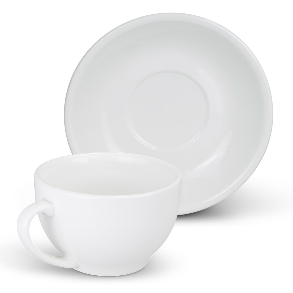A simple cup and saucers that you can now personalise with your brand awareness or logo.