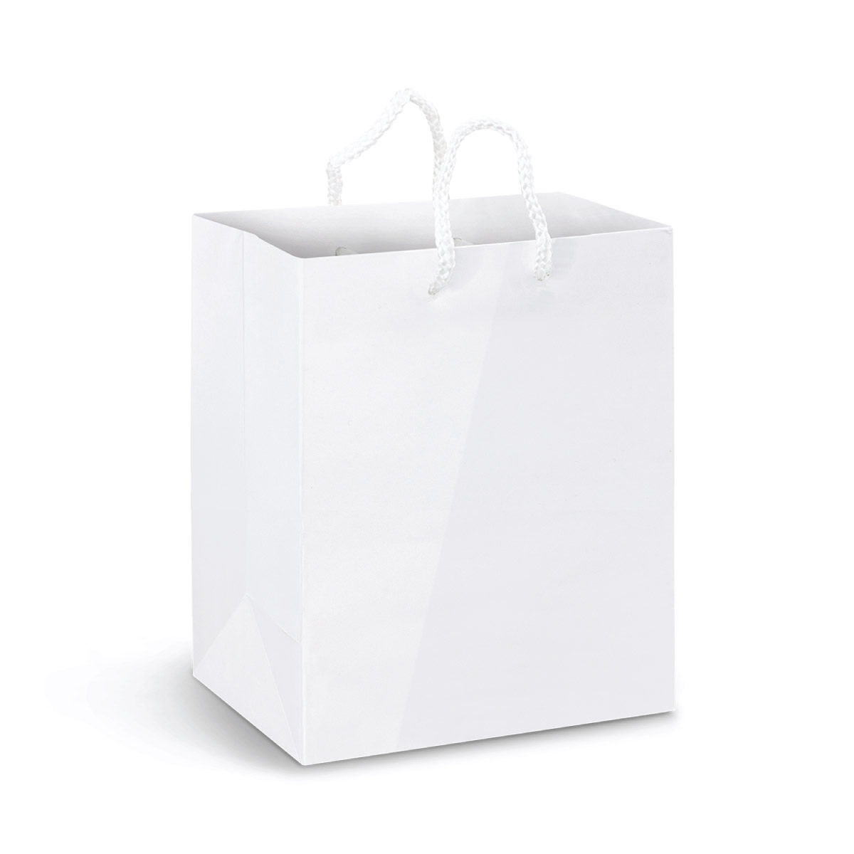 A stylish medium paper carry bag made from gloss laminated art paper and can be printed all over.