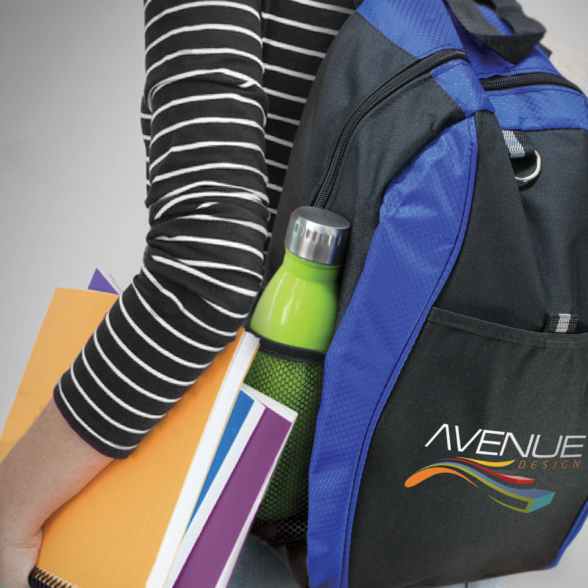 An attractive two tone backpack that's made from 600D polyester and available in 4 different colours.