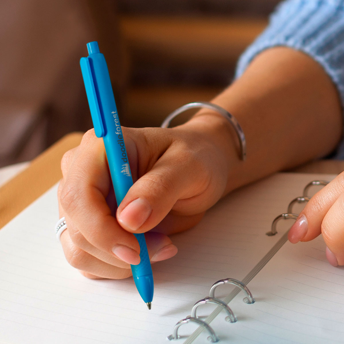 A compostable, retractable ballpoint pen features a vibrant array of colors that are sure to make a statement.
