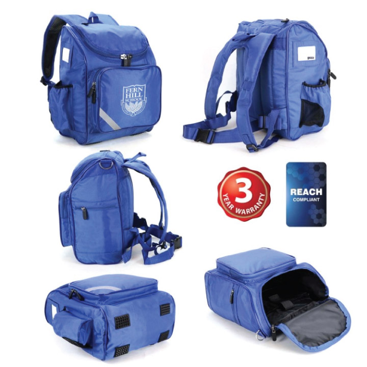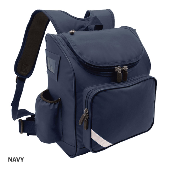 An ergonomic backpack that has a great space on the front for your emblem.