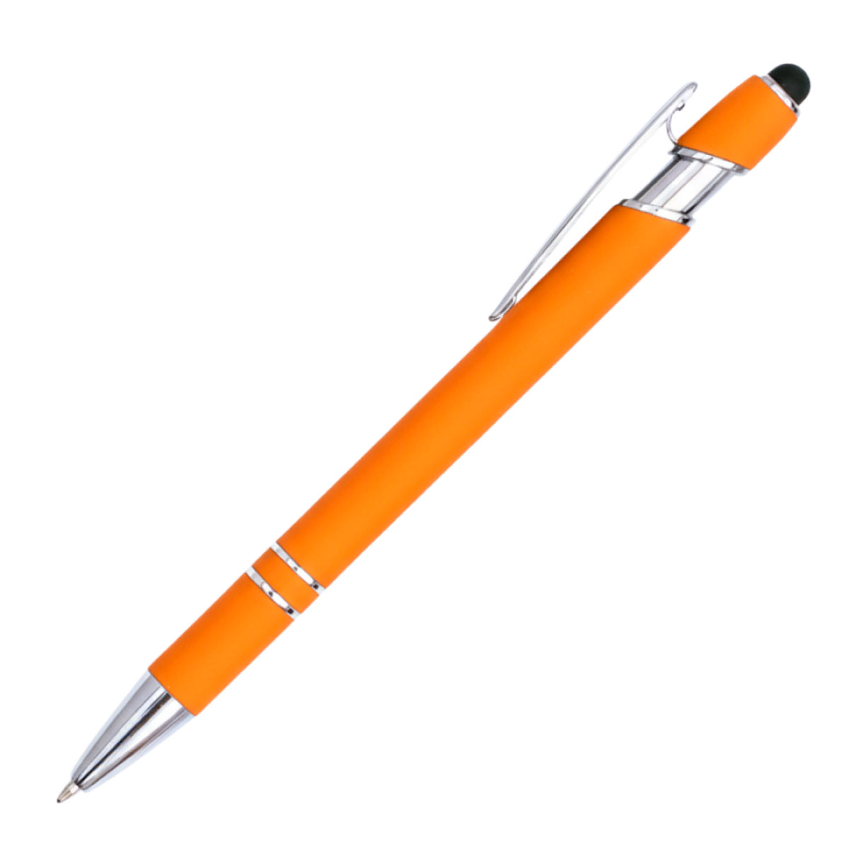 A stylish metal pen with a trendy rubber-coated barrel.