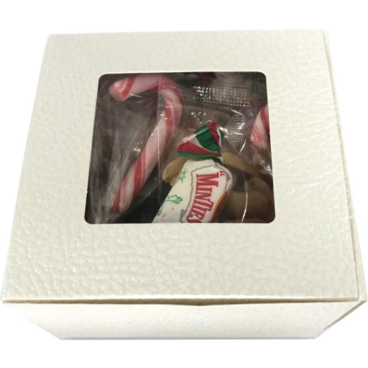 A small Christmas kraft care pack that's filled with a number of tasty treats.