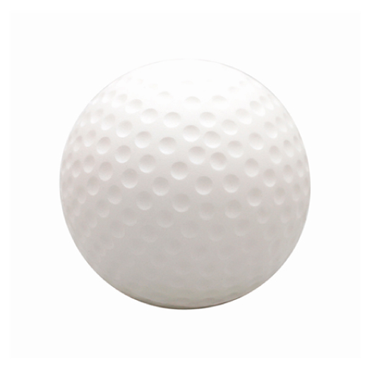 A stress toy shaped like a golf ball featuring a print of your logo.