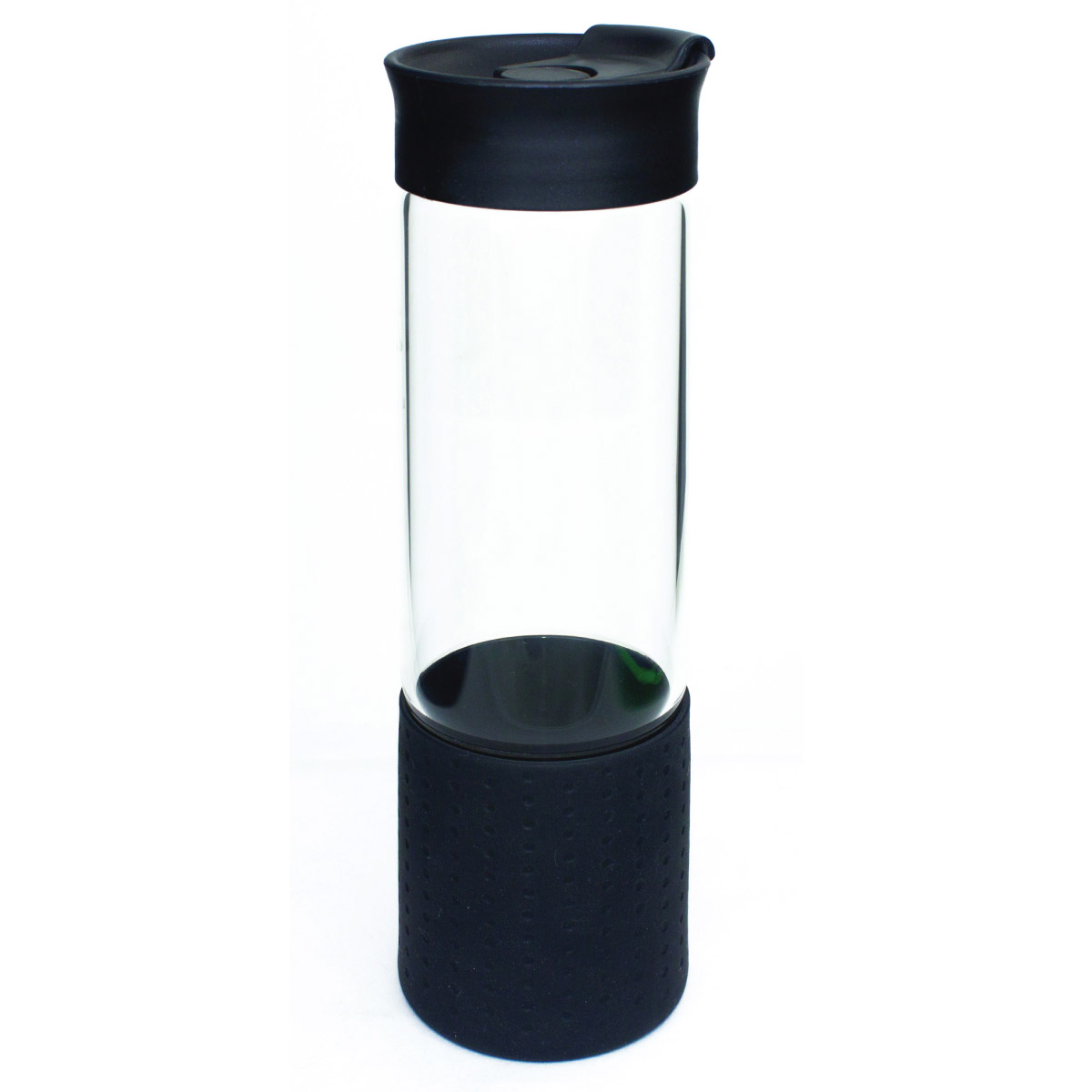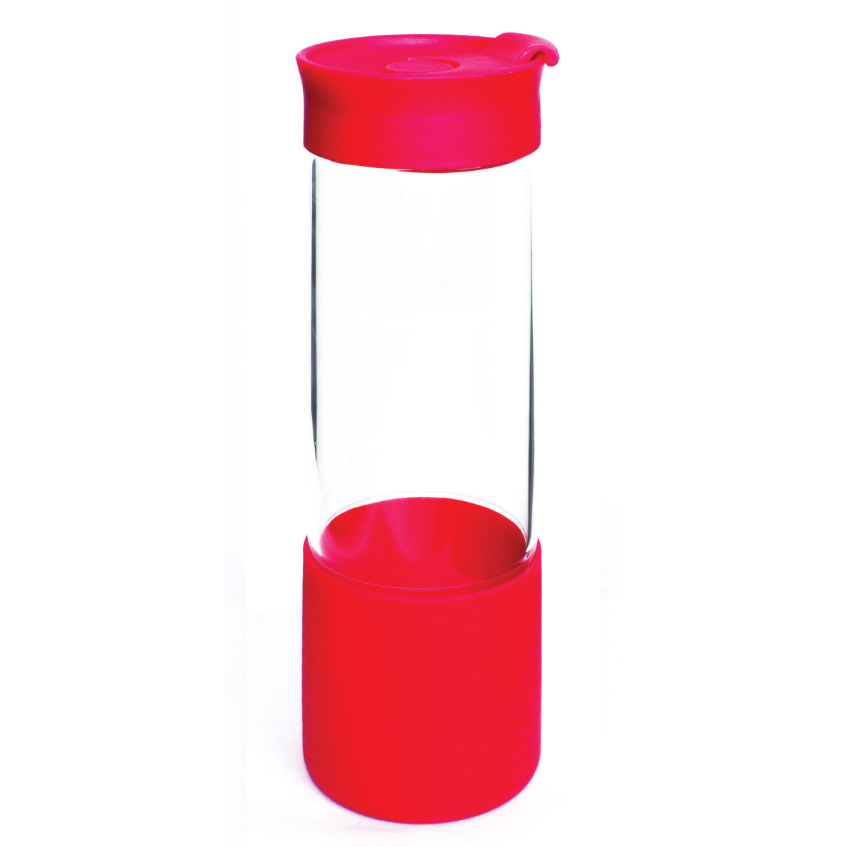A colourful glass bottle with silicone base cover and easy flip-top lid branded with a print of your company logo.